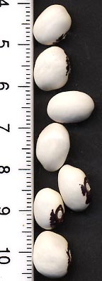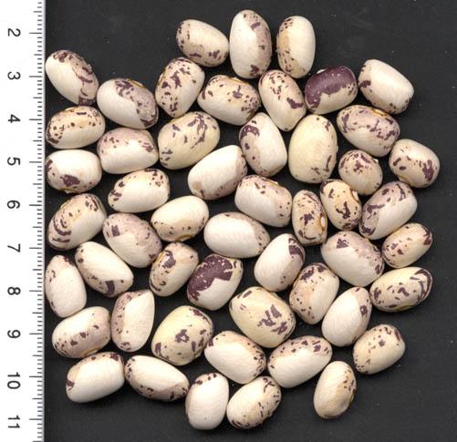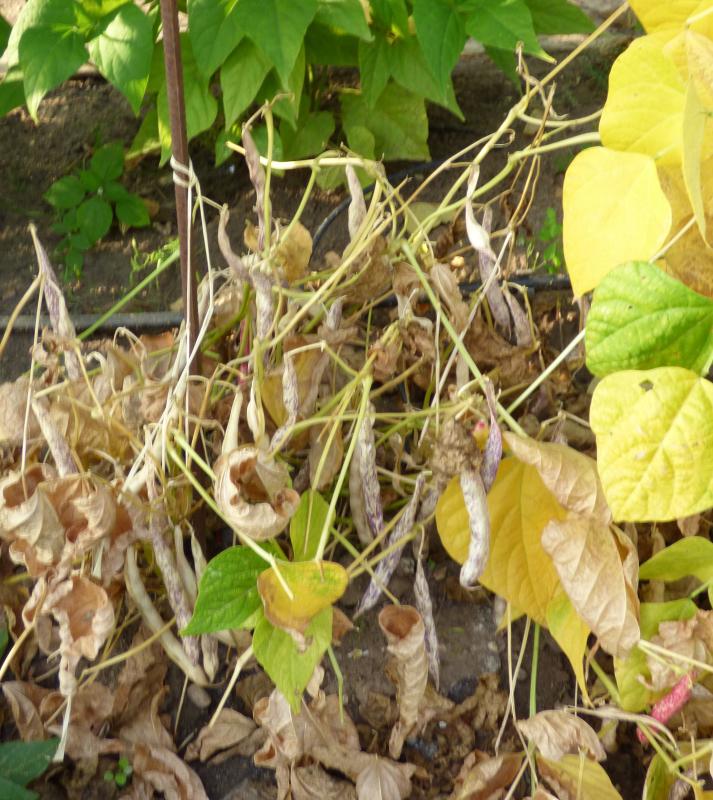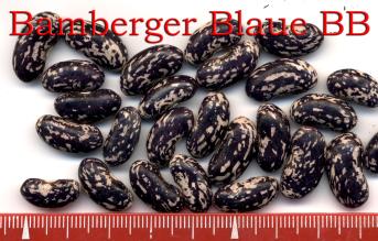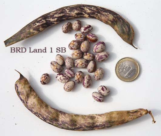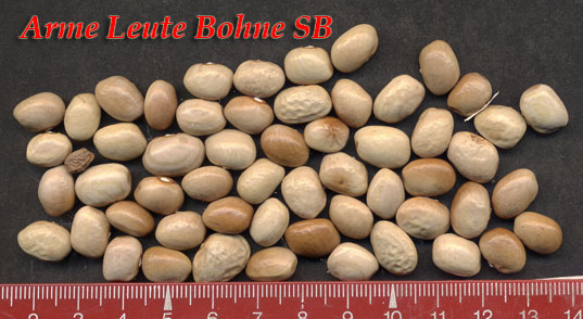 [MHä<14>] [RB<19>]Erst am 15.10. abgeräumt (noch viele grüne Hülsen). Ertrag: 60g. <23>: Späte unergiebige BB (nur ca. zehn Kerne geerntet). Nur wegen des hübschen Korns interessant (das anders ist als das Orig.!