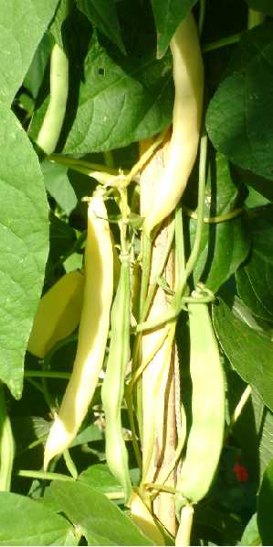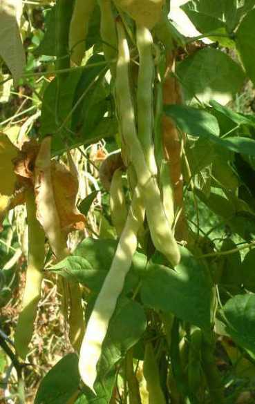 Pfl. 35-45cm; Hülsen 14-22cm, erntereif hellgelb mit leicht rötlicher