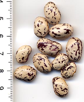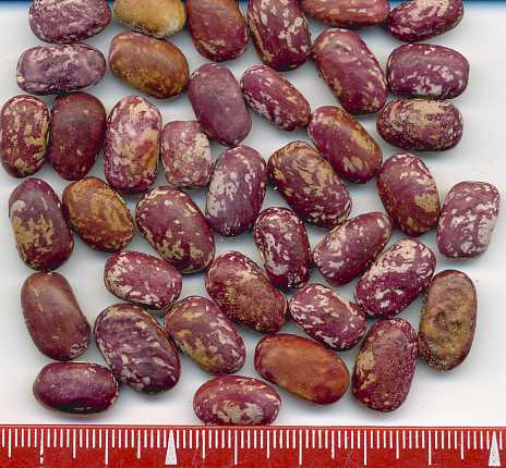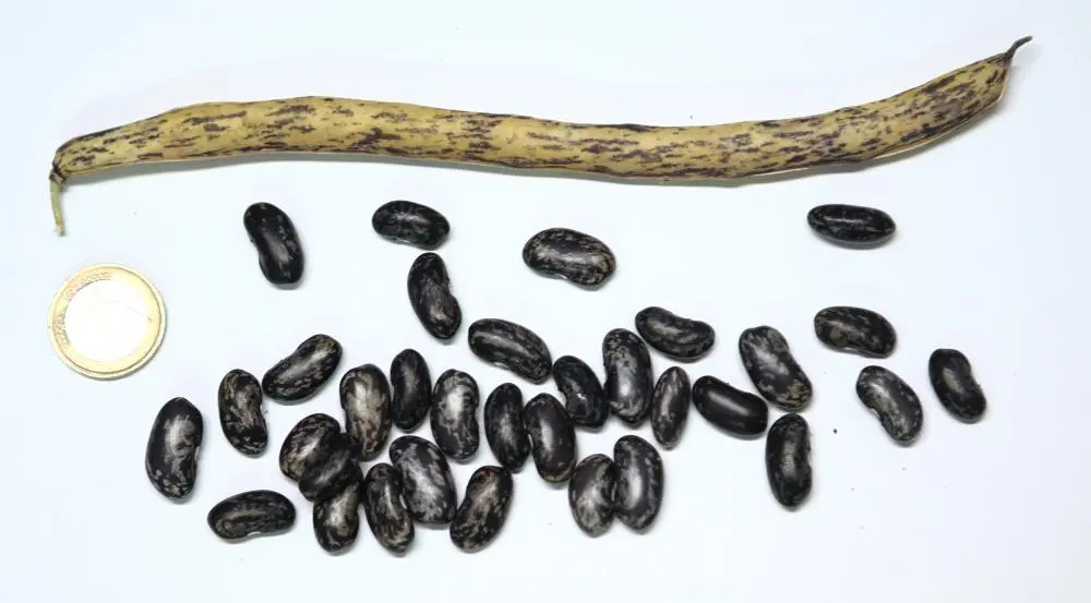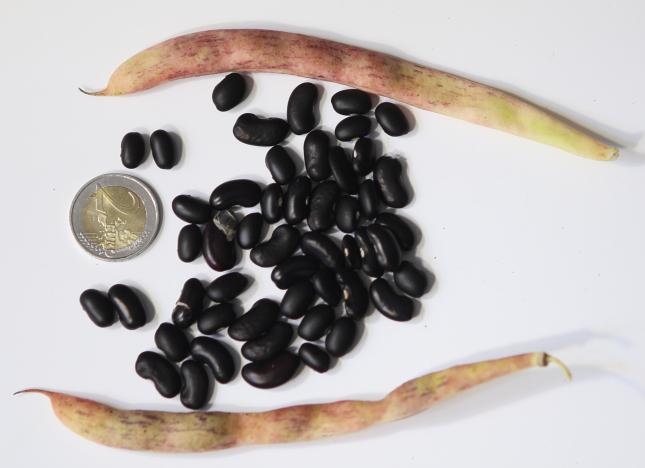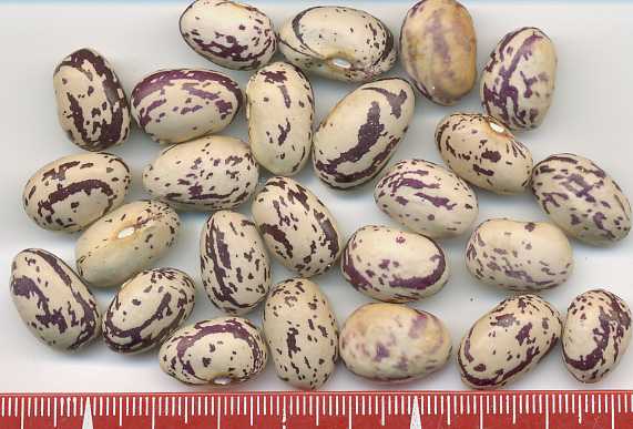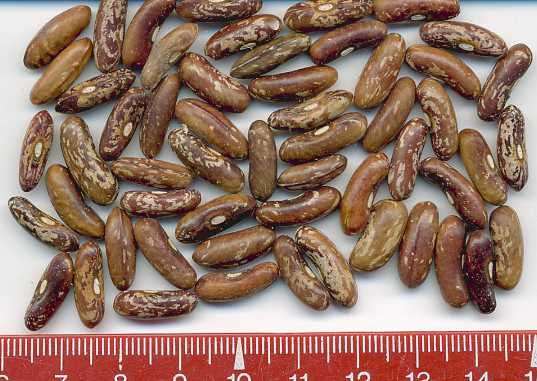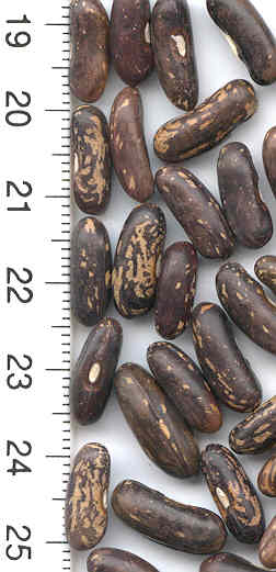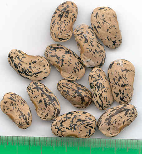 [MHä<16>] [RB<19>]Spät! Am 1.10. noch etliche Hülsen grün. Geerntet 60g. (im Prinzip ertragreich). [MHä<20>] <23>: Pfl. eher KB. Furchtbar spät (am 1.11. abgeräumt). Nur wenige Hülsen geerntet. Sorte nur wegen der exotischen Kerne interessant.