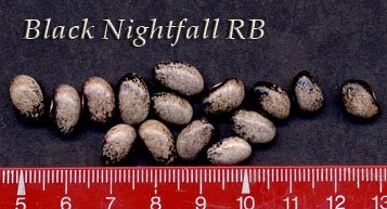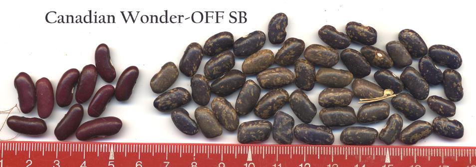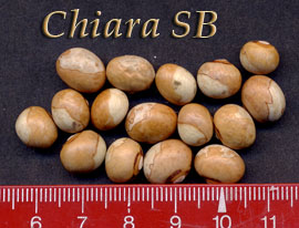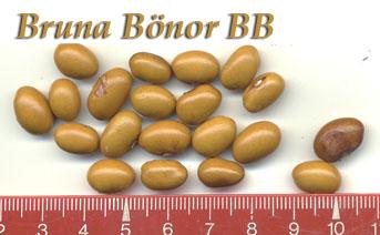 ist braunkernig!) <16>:Pfl. ca. 3m. Spät am 28.9. geht die Ernte erst richtig los. Ertrag gut. <19>:Ertragreich, aber spät (21.10.) Kerne variieren in Farbintensität und Helligkeit. Am 7.11. noch Nachzüglerernte mit deutlich größerem und variabel gefärbten Kernen (fast wie FB). Ausprobieren?? <23>: Niedrige SB ~1,5m. Ernte eher spät. Hülsen ~5cm, Kerne klein, fast schwarz.