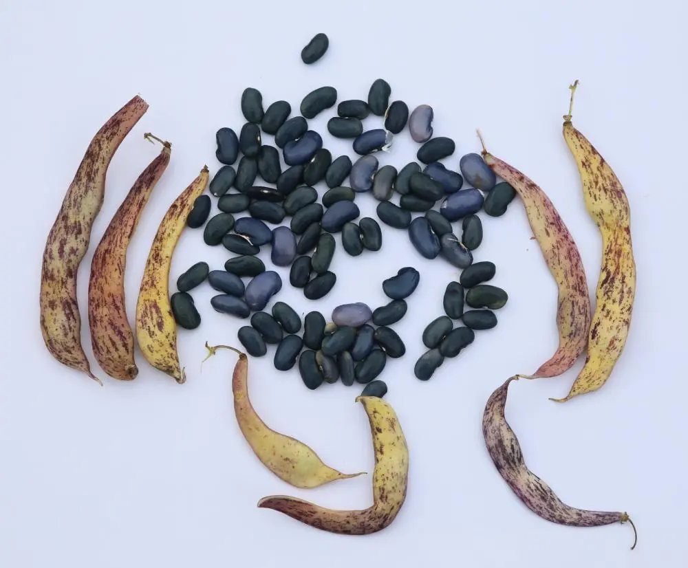 Hülsen 14-20cm; Kerne cremfarben mit leichter Violettmusterung