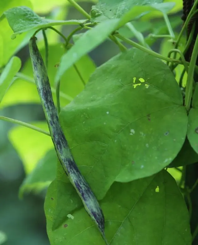 unauffällig. Schlanke unauffällig gefärbte Hülsen von bis zu 15 cm Länge. Sorte