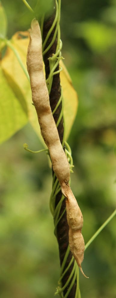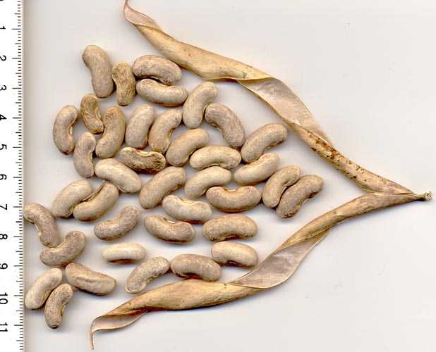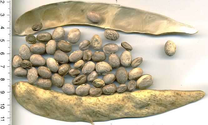 abreifend als die übrigen Pflanzen, auffallend dünne Hülsen von 14-18cm Länge.