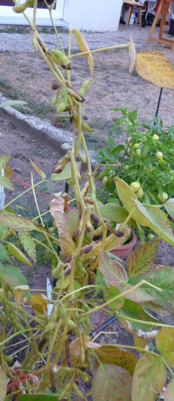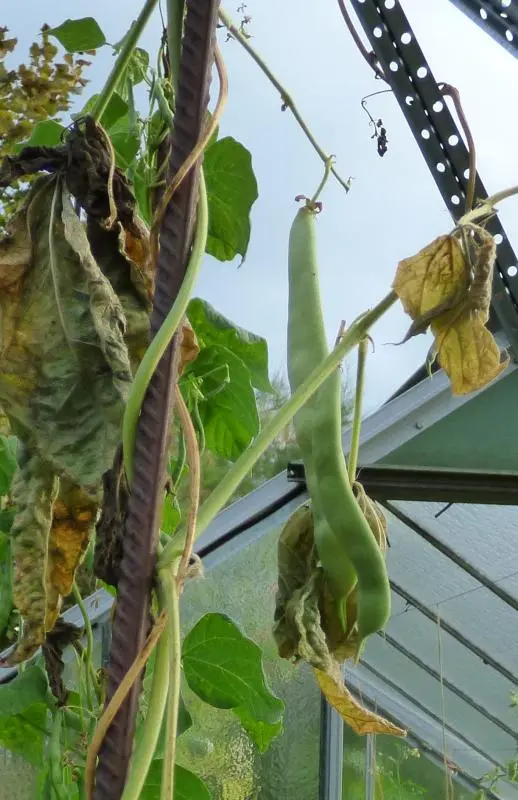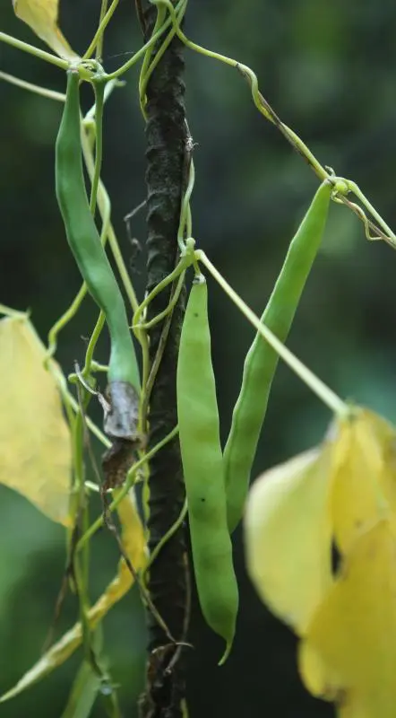 Ziemlich spät (November); Starke Ernte von 14-21cm Hülsen. 3,70m hoch. Es gibt