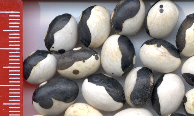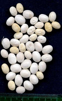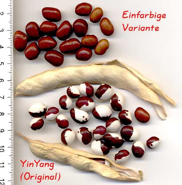 schwarzen und etwas weniger weißen Kernen bei gleicher Hülsenform
