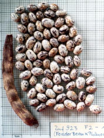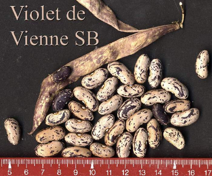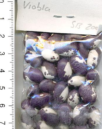 Linie recht homogen und unbedingt erhaltenswürdig. [MHä<17>] <20>: Pfl. >2m. Ende August zu 50% reif, folgernde Ernte aber bis 10.11.: Knubbelhülsen bis 10cm, hübsch lilagrün gesprenkelt (dürr einfarbig)