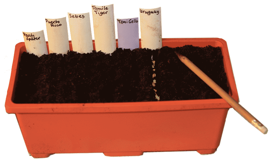 Wer genügend Stellplatz hat, kann bei frischem Saatgut (ein bis max. zwei Jahre alt) auch Korn für Korn in kleine Töpfchen säen; das bekommt den Pflänzchen besser, als die Reihensaat mit anschließendem Pikieren. Man erspart den Pflänzchen dadurch den „Pikierschock“.