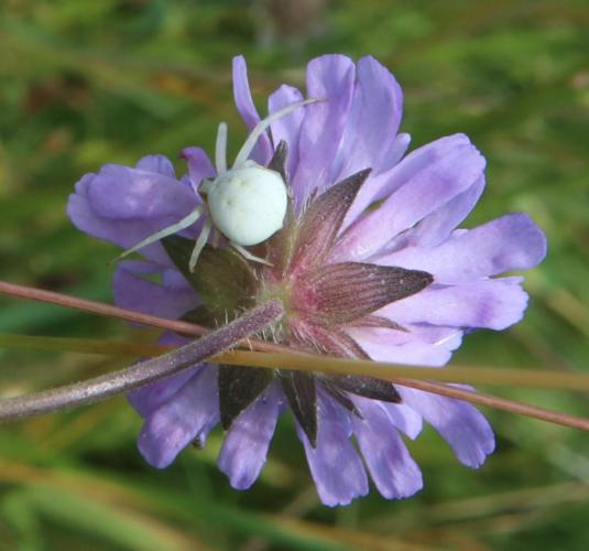 Die Krabbenspinne auf dem rechten Bild erkennt man deutlich, aber nur wenn man unter die Blüte schaut.