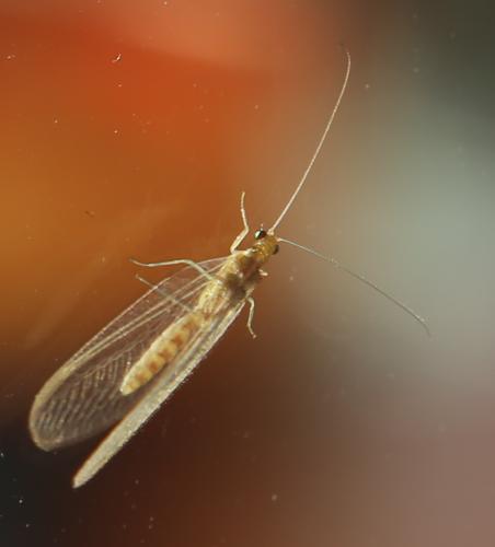 An der Fensterscheibe sonnt sich im späten November noch eine einsame Florfliege.