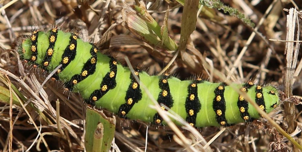 Raupe des kleinen Nachtpfauenauges begegnet ist.