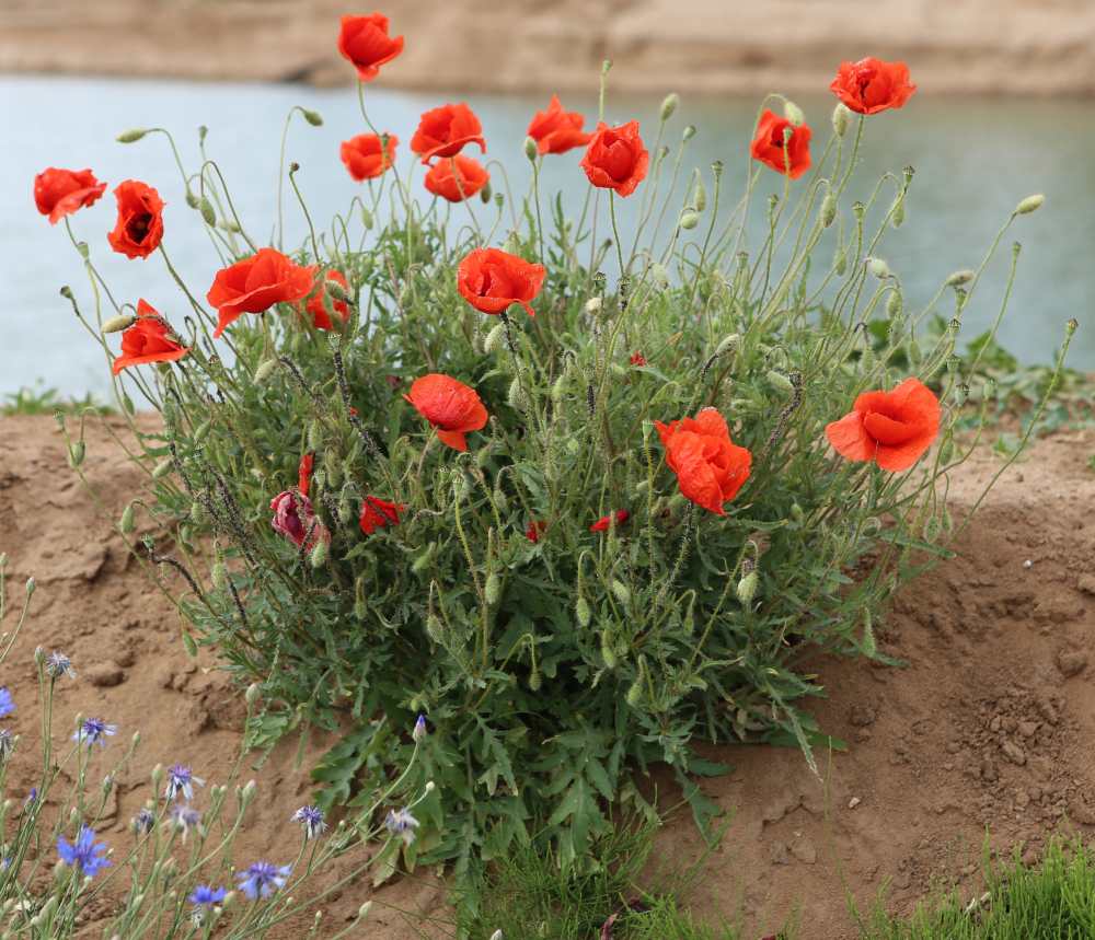 Klatschmohn ist eine der ersten Pionierpflanzen in diesem durchpflügten Gelände.