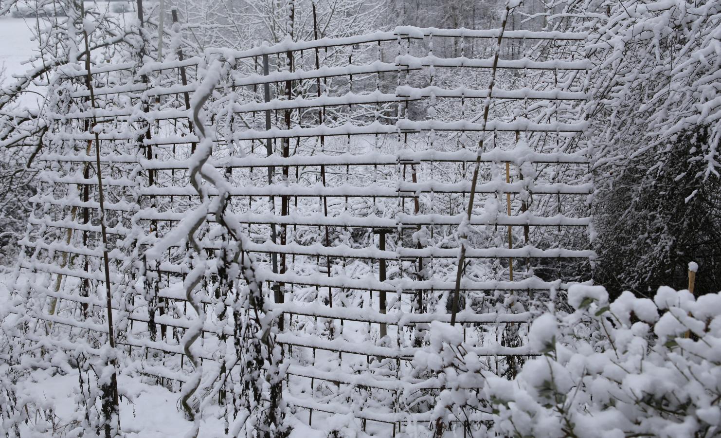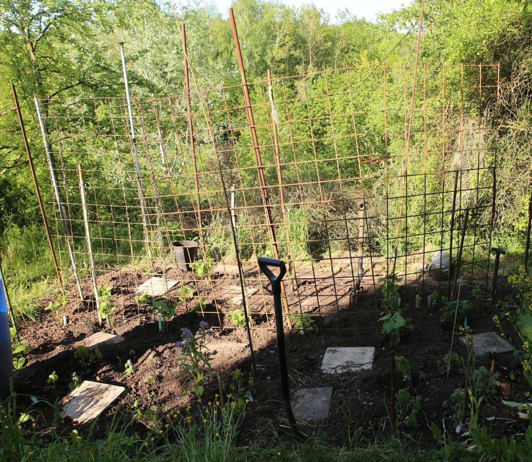 Man kann sich schwer vorstellen, dass hier bald wieder Bohnen ranken sollen. (Aber scroll mal nach unten in die Mai-Ansicht des Gerüsts. Jetzt fällt die Vorstellung schon leichter.)