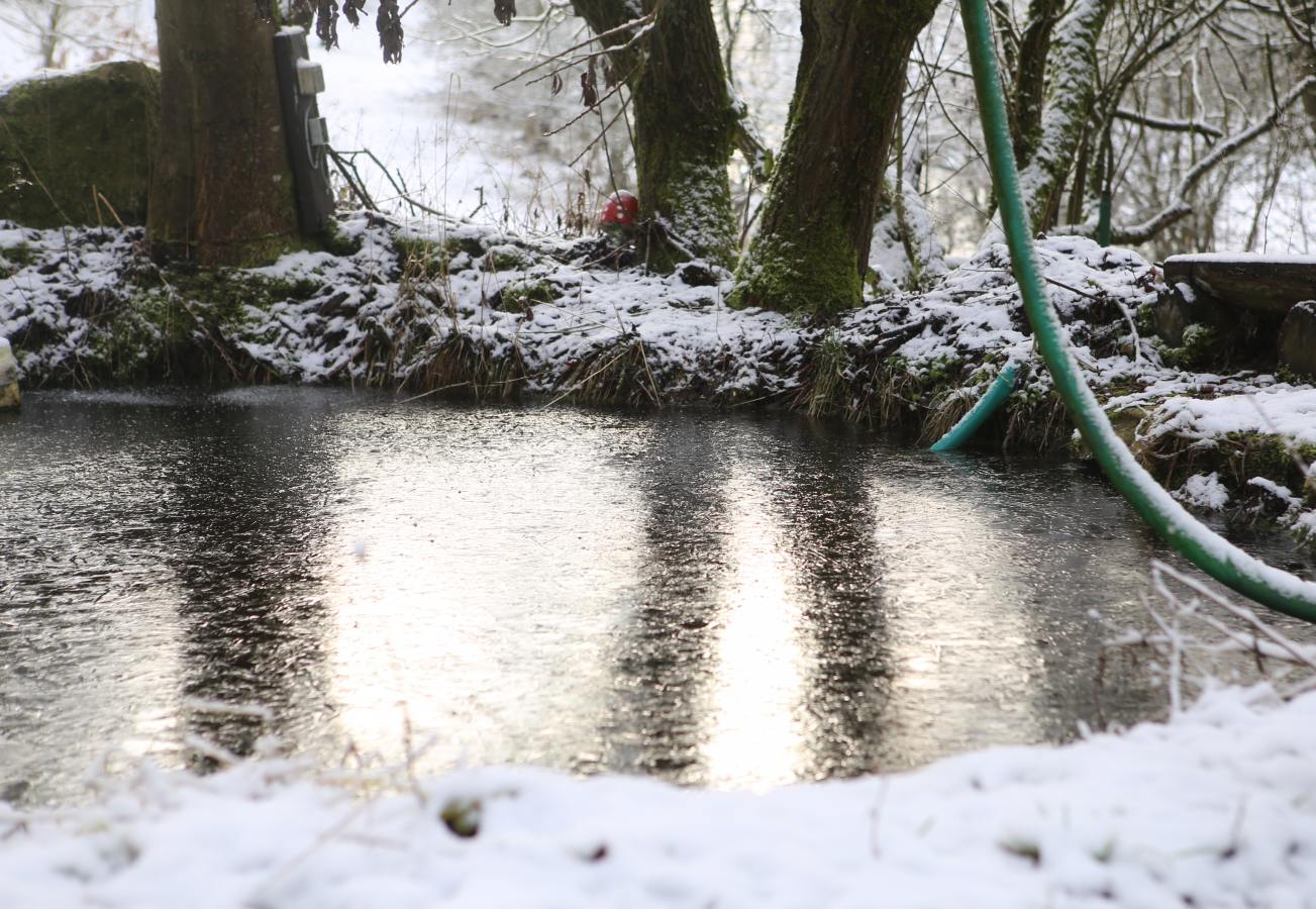 Aber dann, Mitte Januar, kommt klirrender Frost über das Land. Bei 10 Minusgraden kann ich auf meinem Teich Schlittschuh fahren.