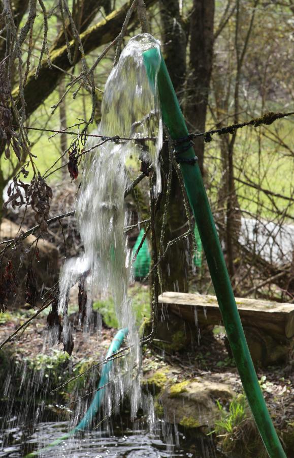 Das Wasser hüpft aus dem Teich wieder in den Teich und belüftet ihn auf das Vortrefflichste. Trotz des vielen Laubes, das im Herbst immer hineinfällt, hat das Wasser durch die Umwälzung wieder Trinkwasserqualität.