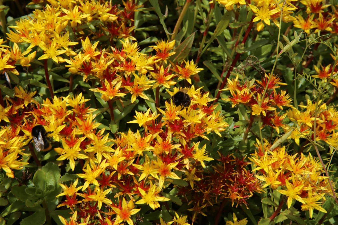 Auf diesem Extremstandort jedoch hat sich gerade diese Fetthennenart zu großen Teppichen ausgebreitet, die im Juni traumhaft leuchten.