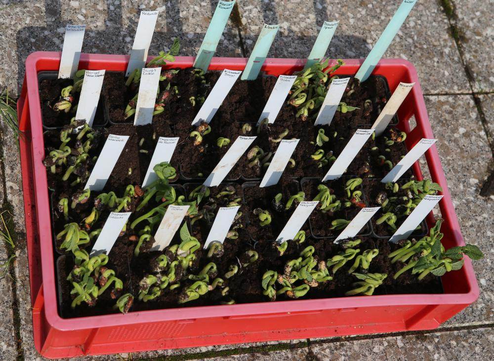 Die ersten Buschbohnenbabys lugen aus dem Boden. Die Wachstumsfortschritte
