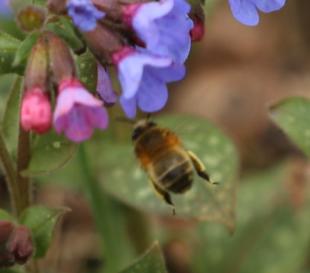 Meine Lungenkraut-Teppiche sind ein Blütenmeer und locken Unmengen an frühen Insekten an (s.a.