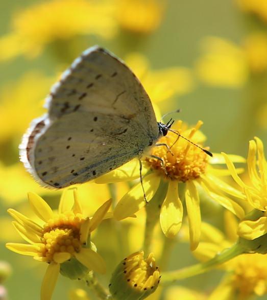 z.B.: (in der Bildreihenfolge) Der Braune Feuerfalter, der Faulbaumbläuling und der Dunkle Wisenknopf-Ameisenbläuling.