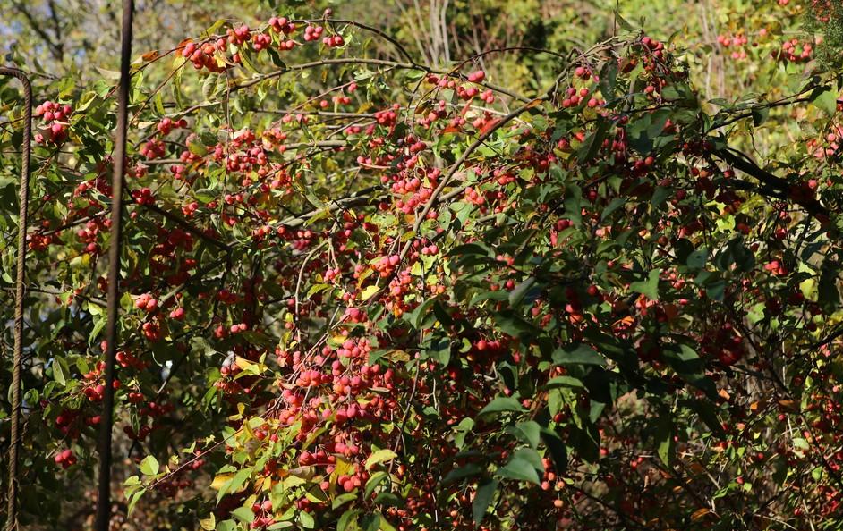 Auch die Zierbäume legen sich ins Zeug. Auf den Bildern sieht man 'Crataegus pinnatifida major' (eine angeblich chinesische Züchtung)
