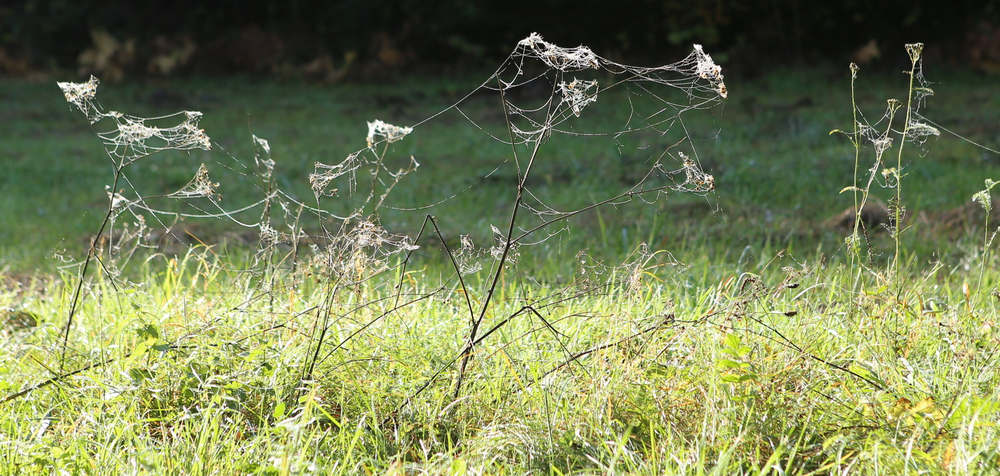 Aus der Nähe machen die Fangnetze der Spinnen echt was her, selbst die eher chaotischen Netze im unteren Bild.