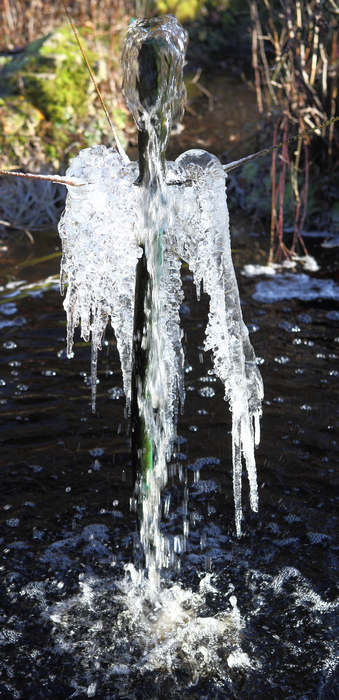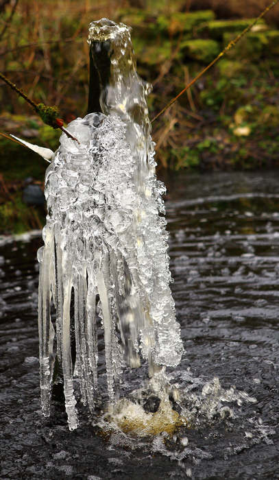 Das Jahr geht zu Ende wie es begonnen hat - mit missmutigen Trollen, geheimnisvollen Engeln und trutzigen Gnomen aus Eis, alle gewachsen in meinem Teich.