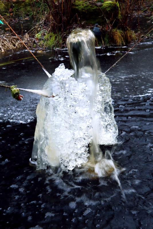 Der Winter zaubert mit dem Wasser - engelgleich steigen Eisgeister aus meinem Gartenteich