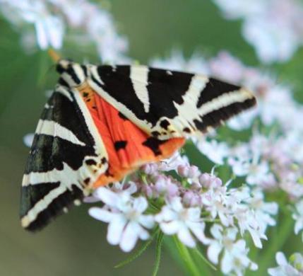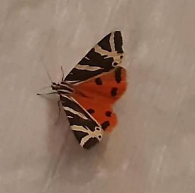 Der Russische Bär (Euplagia quadripunctaria), heuer häufiger als sonst, kommt uns meist erst im August