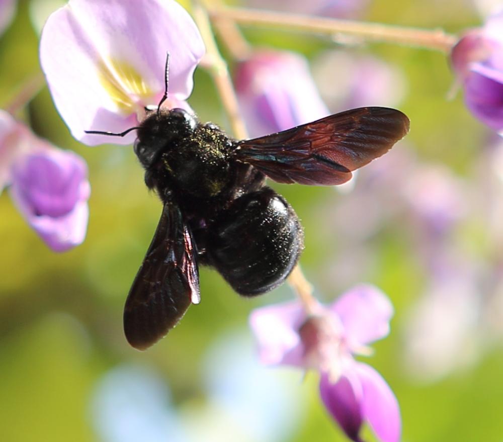 Die Holzbienen besuchen mich seit einigen Jahren regelmäßig - sie lieben die Glycinien, wenn sie blühen.