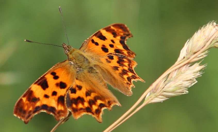 Der C-Falter war 2022 ungewöhnlich häufig, hielt sich aber eher an schattigen feuchten Stellen auf.