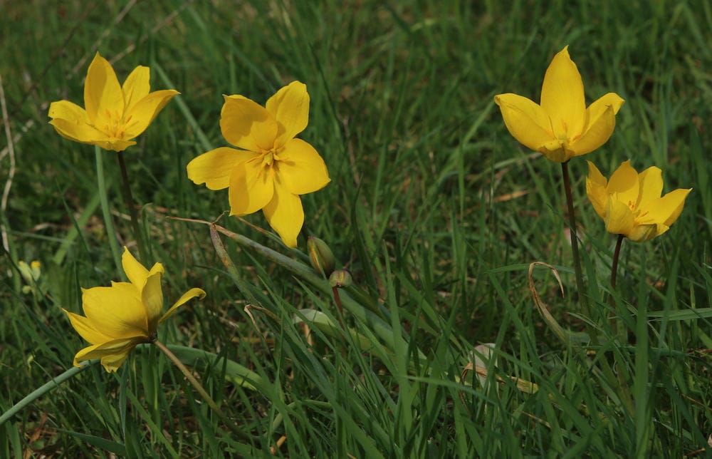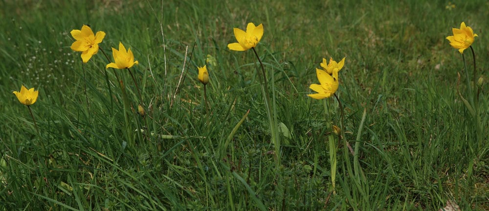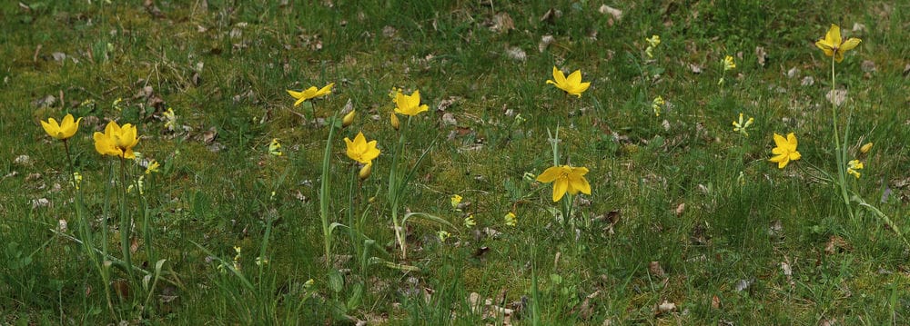 Im letzten Jahr versuchte ich, die wilde Weinbergstulpe (Tulipa sylvestris) auf meiner Wiese anzusiedeln. Fürs erste scheint das geglückt zu sein, wie die vielen aufgeblühten Exemplare zeigen. Ich hoffe, sie bleibt auf Dauer und breitet sich weiter aus. Sie blüht gleichzeitig wie die Schlüsselblumen (letztes Bild); meine Wiese ist jetzt ein gelbes Meer.