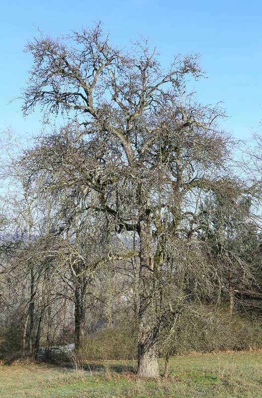 Schon vor 40 Jahren, als ich hierher zog, fielen mir diese zwei imposanten Landschaftsdenkmäler auf. Die Bäume könnten nach meiner Schätzung gut 100 Jahre alt sein (vor 42 Jahren, als ich hierher zog, sahen sie schon genau so aus) und wirken heute so gesund und unzerstörbar wie ehedem. Ich habe sie mit einer "Förster-Schätzmethode" vermessen - danach ist der Baum im ersten Bild gut 15m hoch, der zweite etwa 10m. Zum Glück haben sie noch niemanden "gestört"; denn als natürlicher Feind kommt bei solchen langlebigen Obstbäumen nur der Mensch in Frage, dem sie irgendwann zu wenig Ertrag abwerfen oder zu sehr im Weg stehen. Ich wünsche ihnen noch ein langes Baumleben.