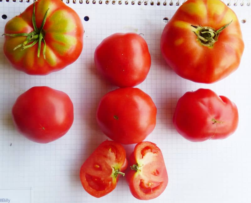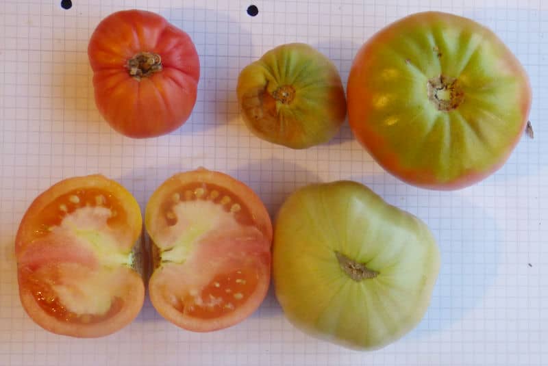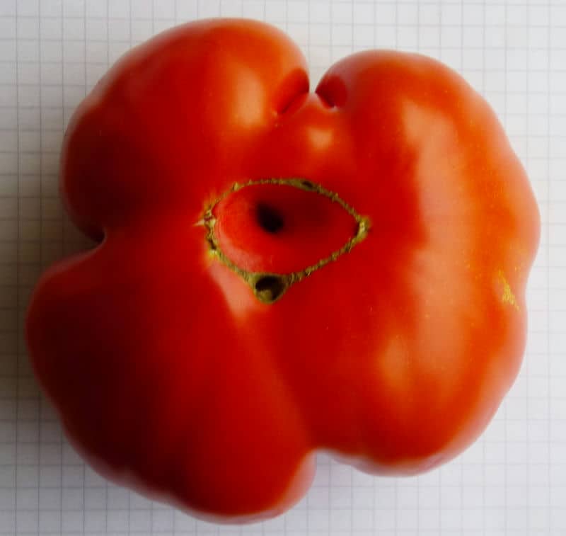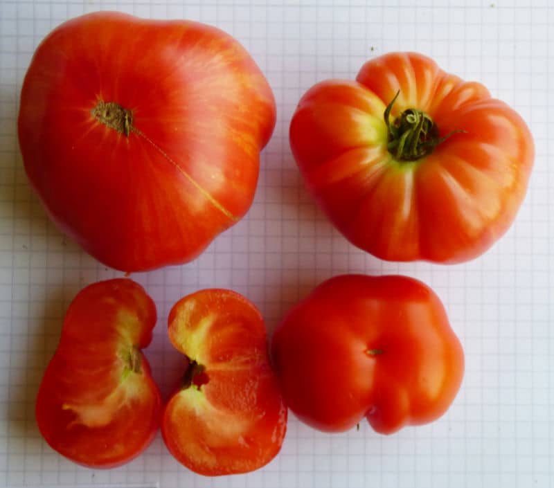 groß. {13} Pfl. ca. 2m hoch. Breite "riefelige" Fleischtomaten