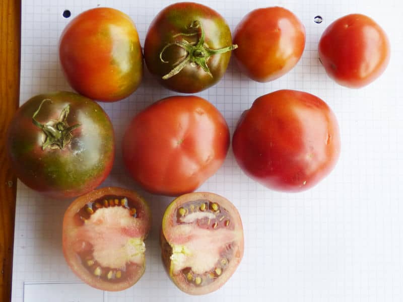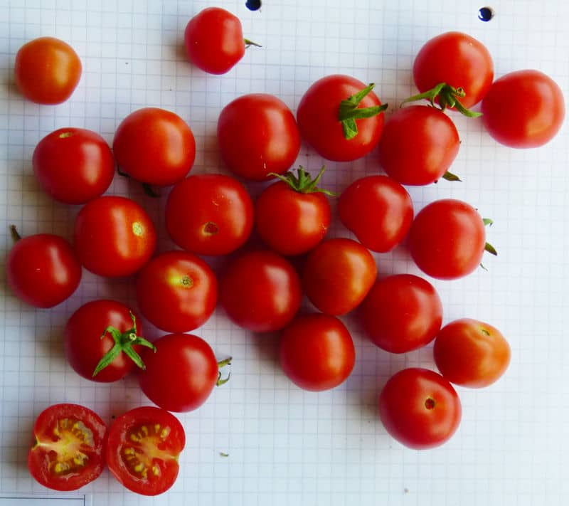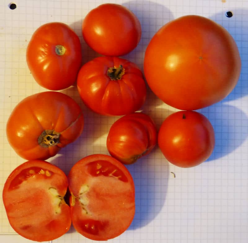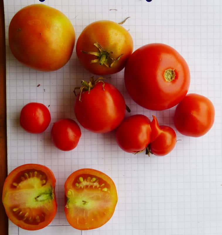 (alle zweikemmerig mit Tendenz zur Hohlkammerigkeit!) von ca. 2m hohen Pflanzen. Geschmack nicht schlecht. Gute Sorte! {RB19}Pfl. bis 3m. Früchte nicht platzfest, 3-5cm