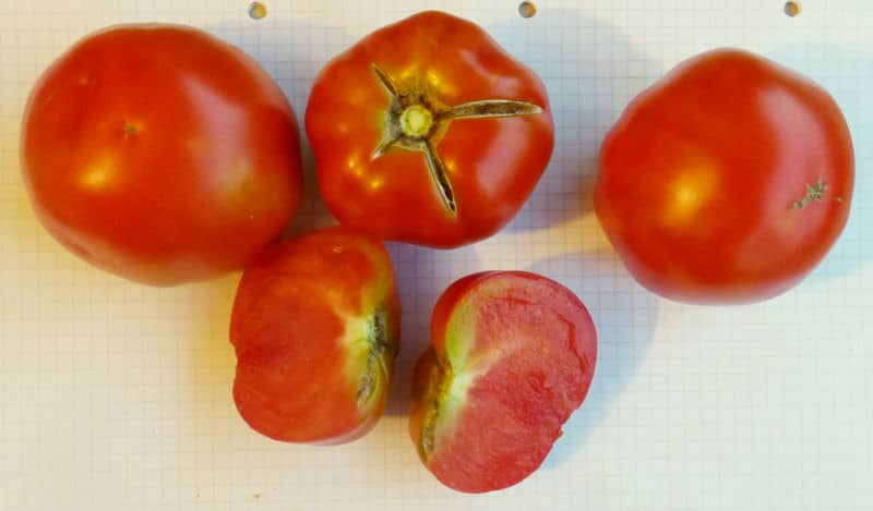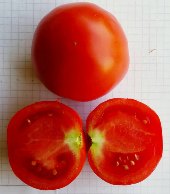 schmeckende ertragreiche Fleischtomate kleineren Kalibers; wenig