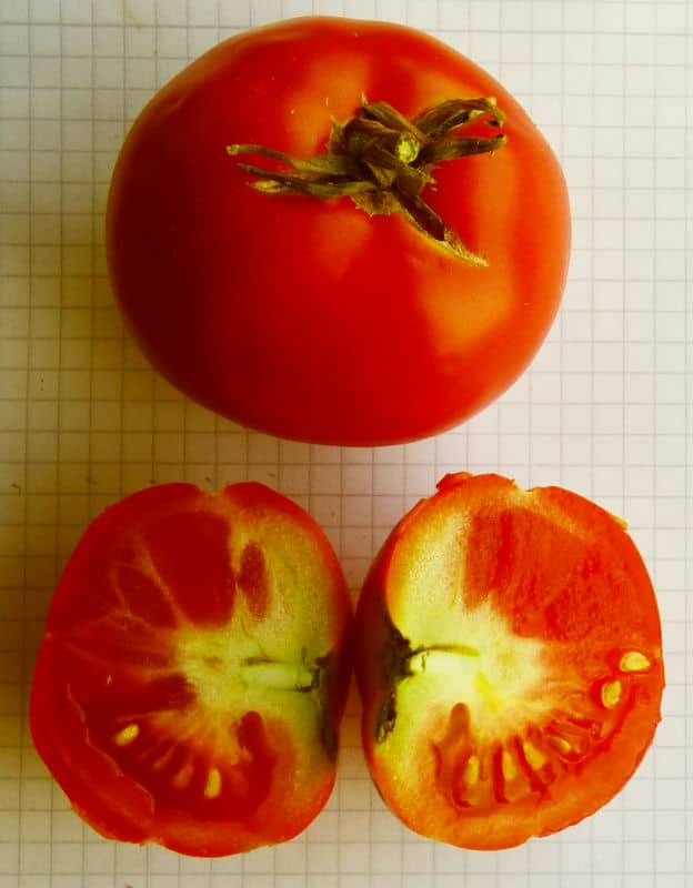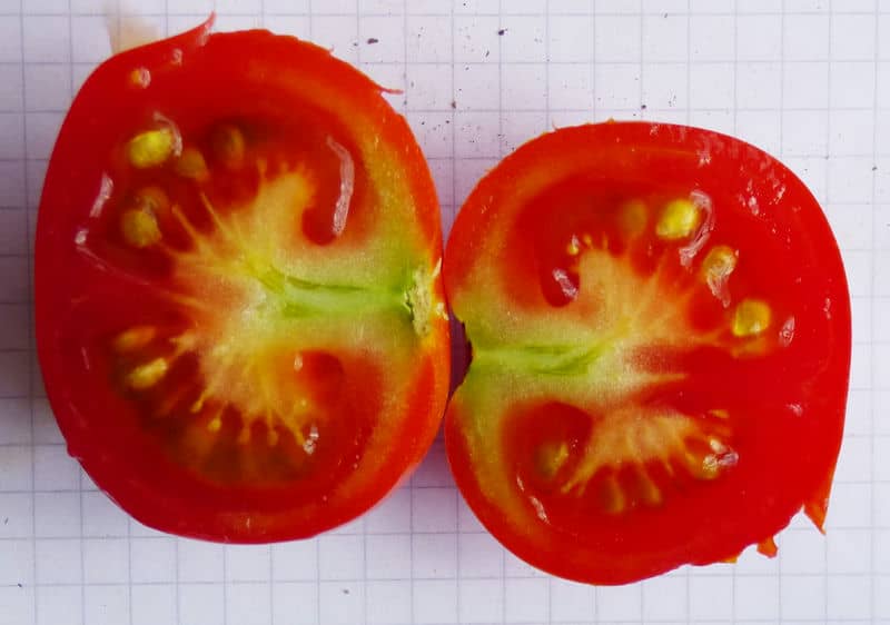 Stabtomate. Robust und wohlschmeckend. 2-3-kammerige mittelgroße