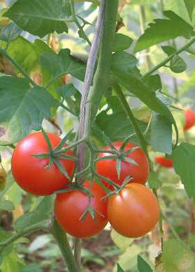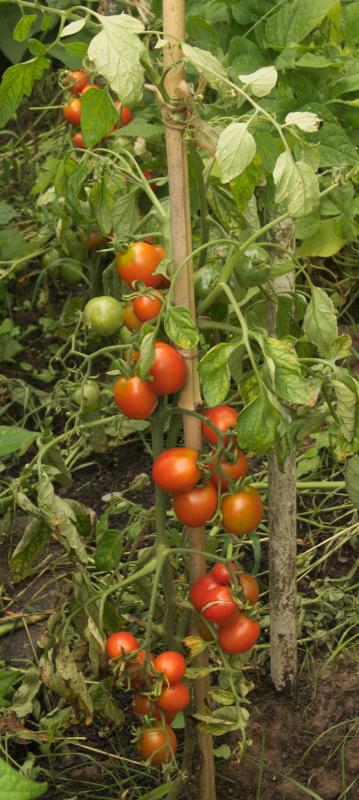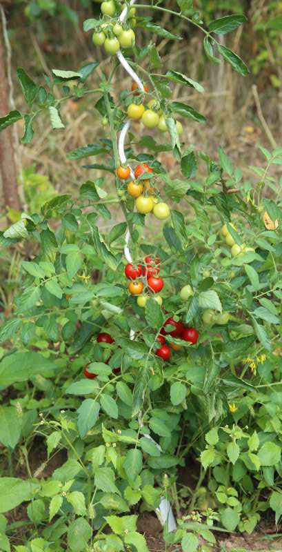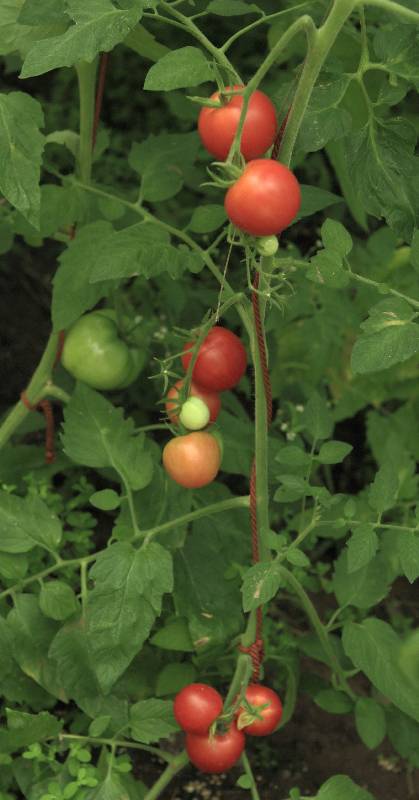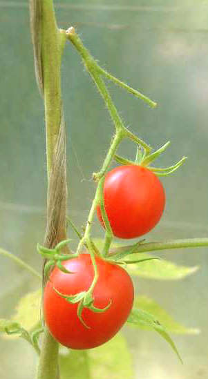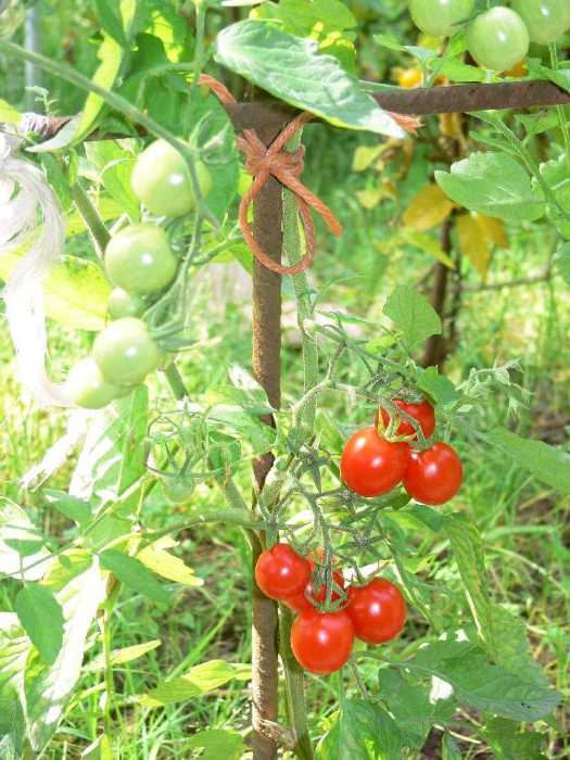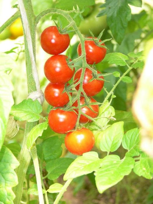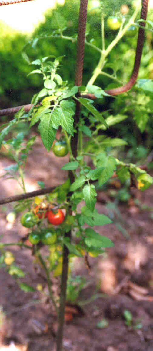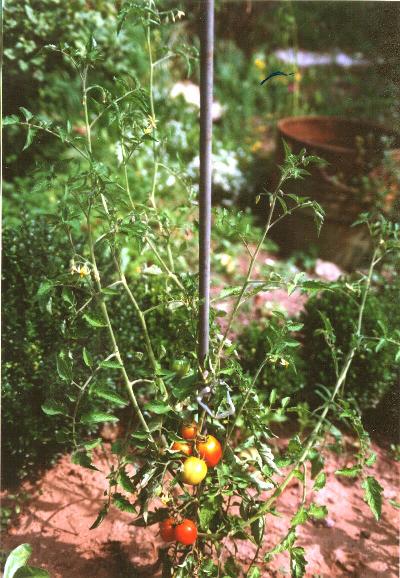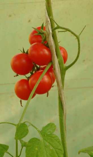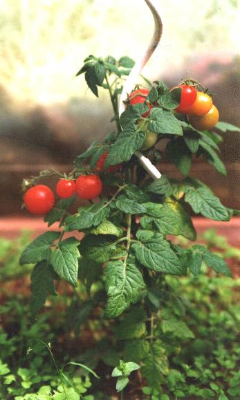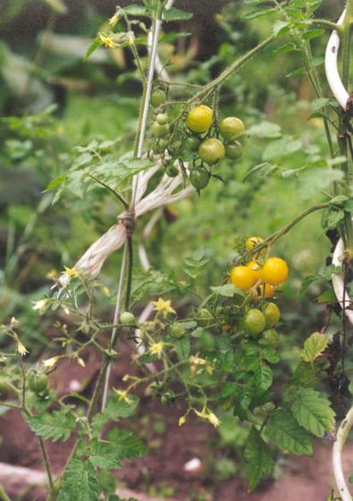 {02} Wohlschmeckende Kirschtomate an zarter Pflanze von ca. 1,20 Höhe.