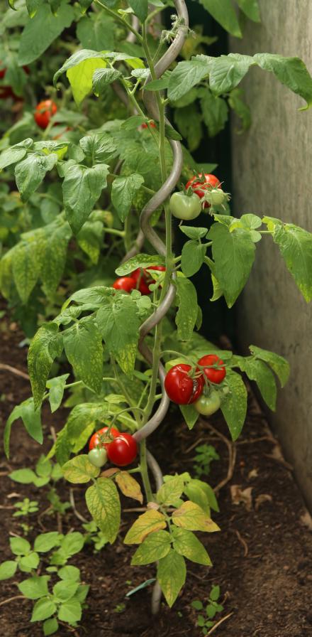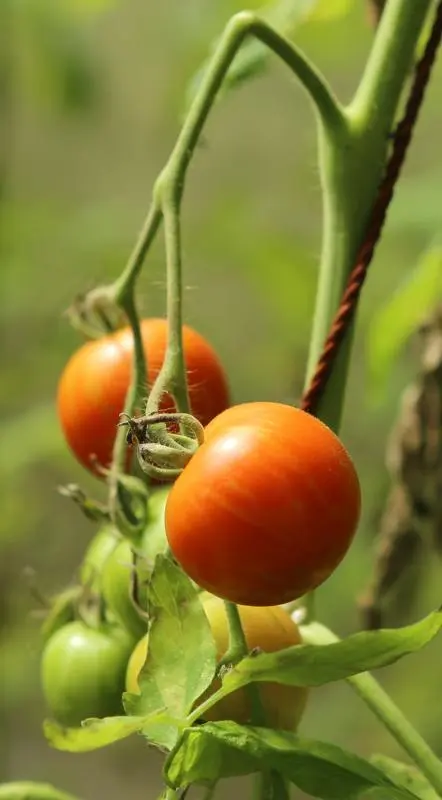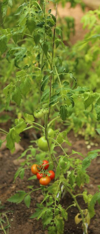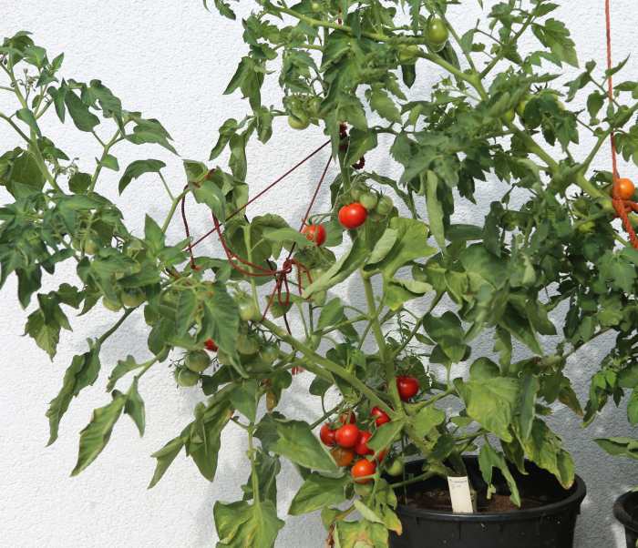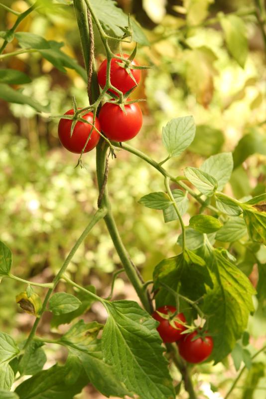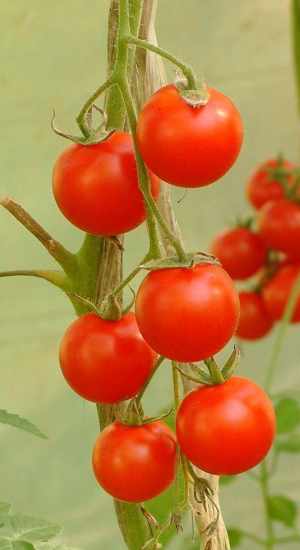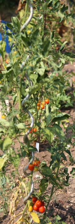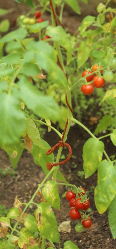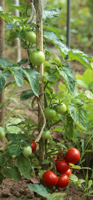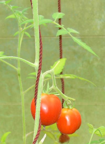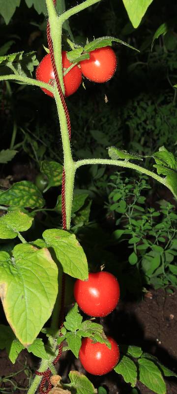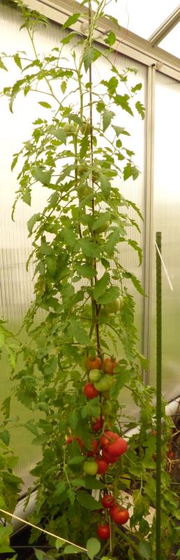 {02} Wohlschmeckende Kirschtomate an zarter Pflanze von ca. 1,20 Höhe.