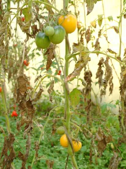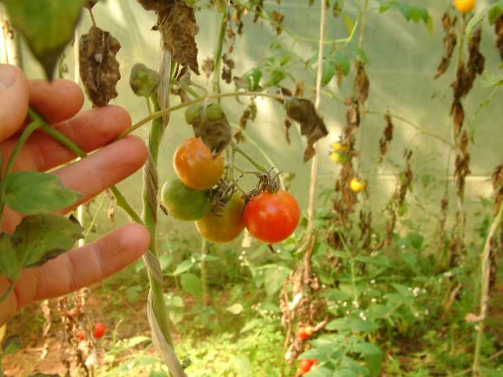 Früchte allesamt für die Küche nicht mehr verwendbar; im Folienhaus