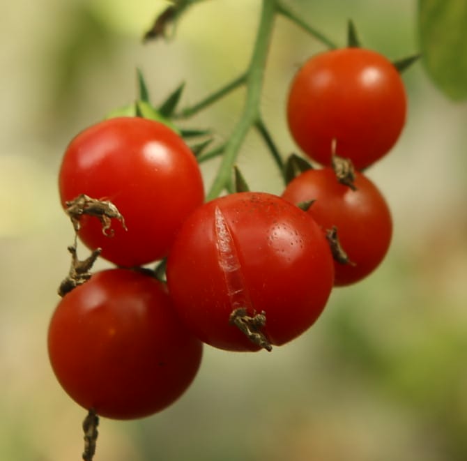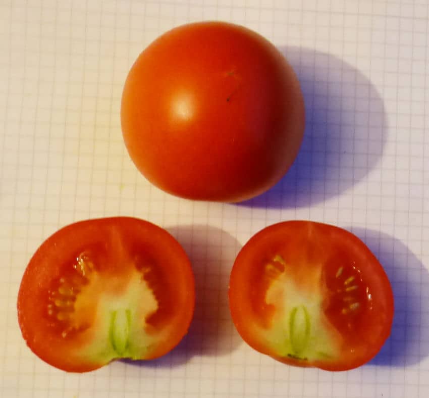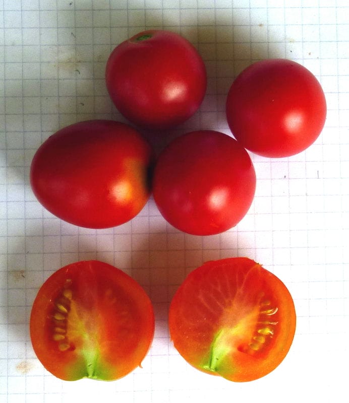 keine Kirschtomate, sondern Mini-Fleischtomate mit weichen harthäutigen