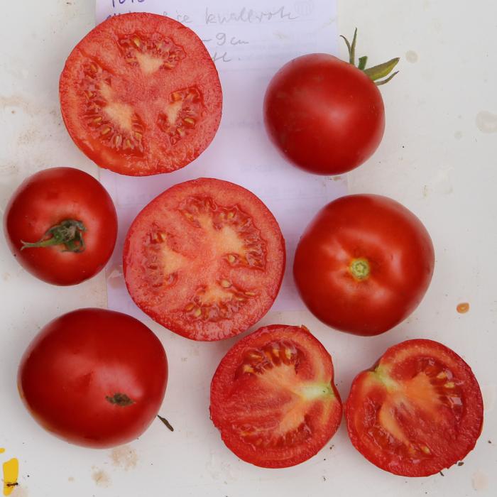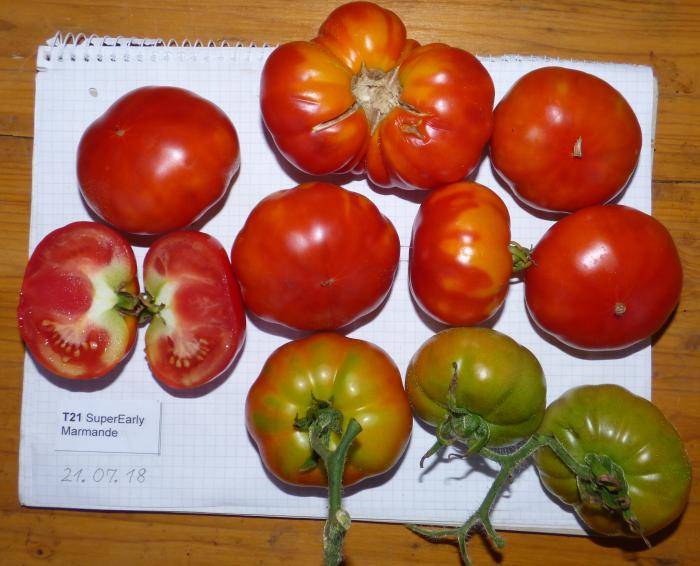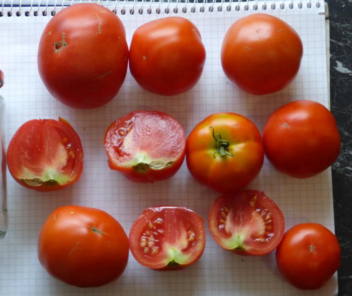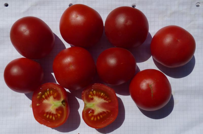 "Normaltomate", die auch halbreif schon geschmackvoll ist; ertragreich.