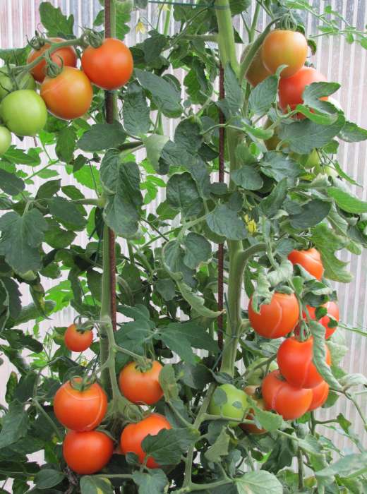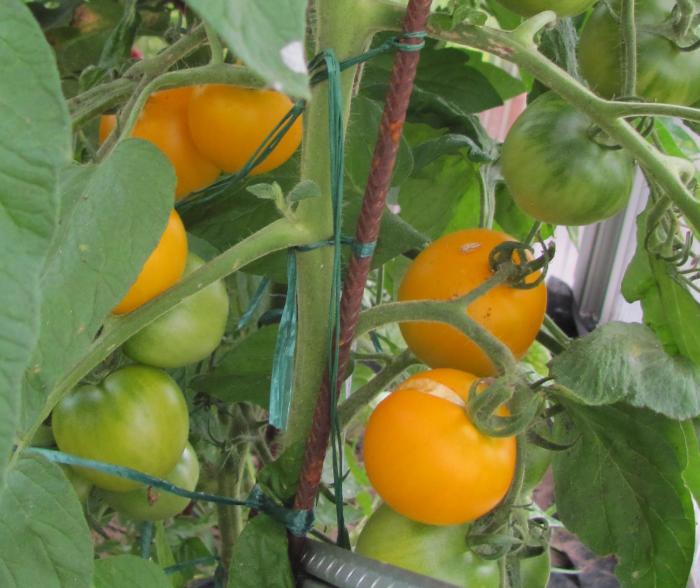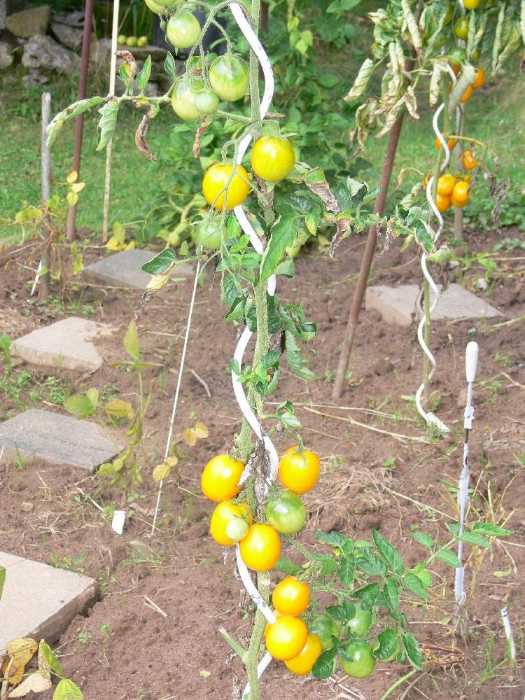 gut für Freiland. Wenn der Sommer warm ist, kann man sie ohne Anbinden und