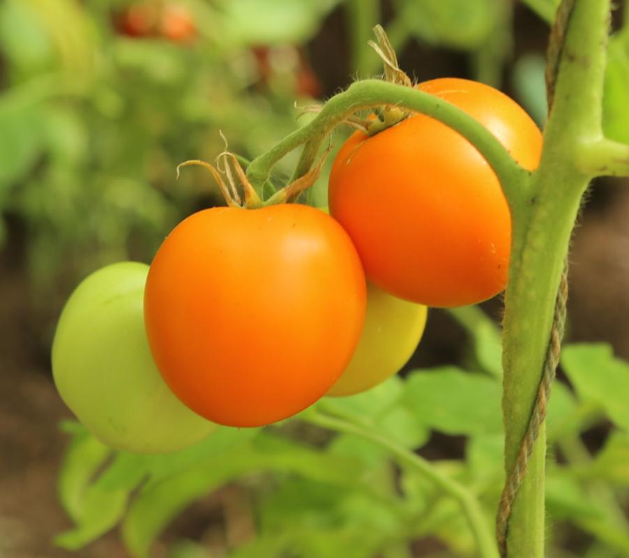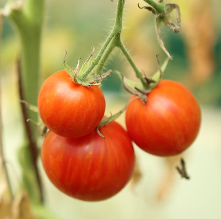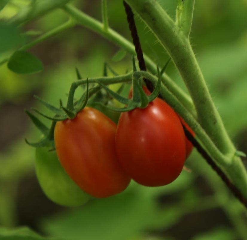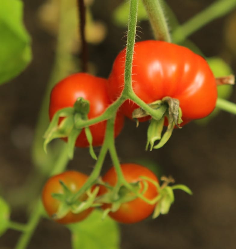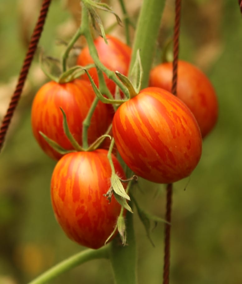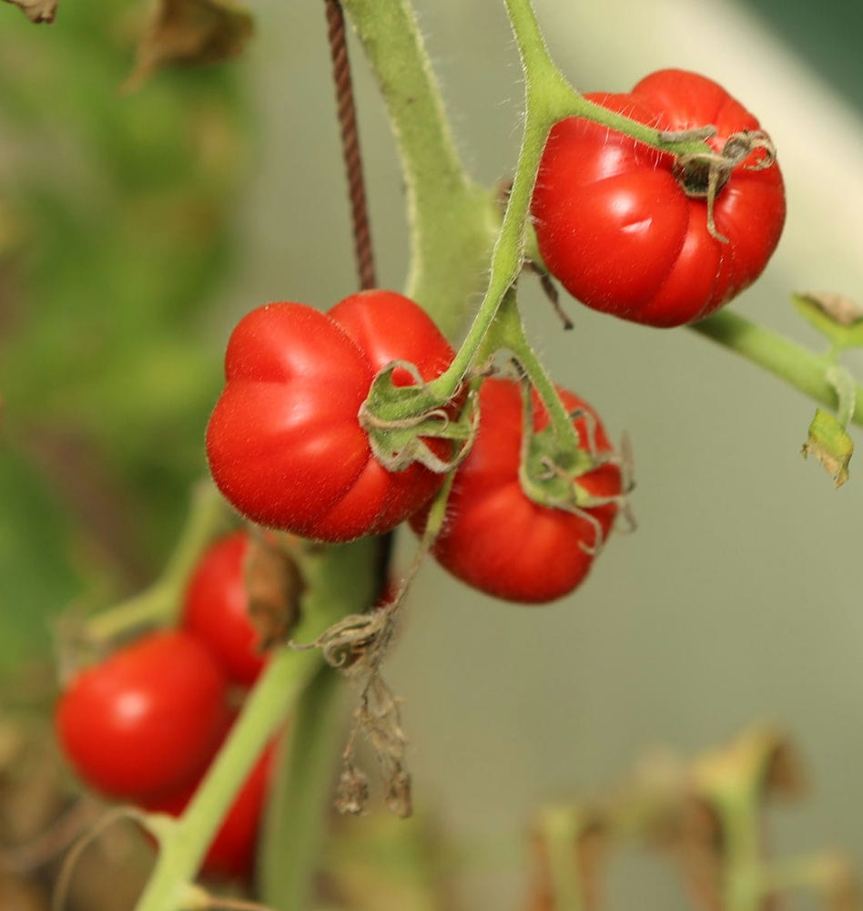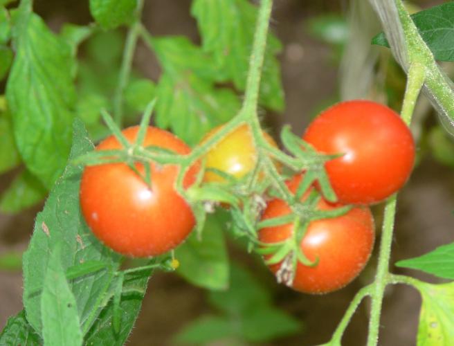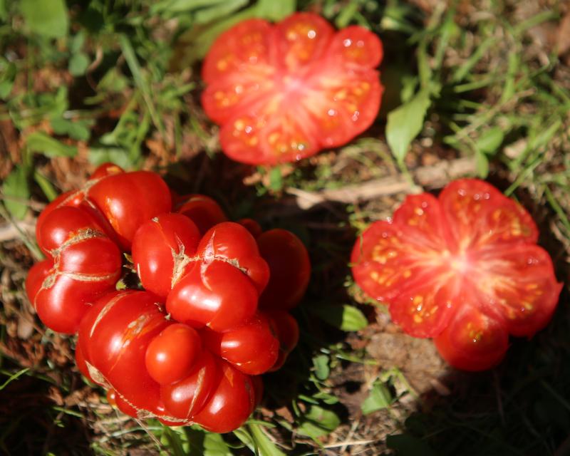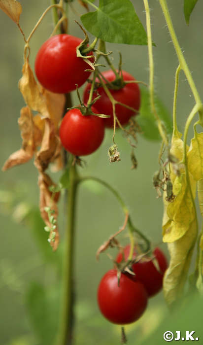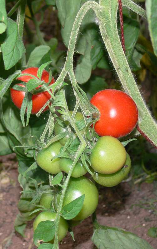 Pflanze. Früchte 3-6cm, etwas hoch gebaut (Ketchuptyp), attraktiv