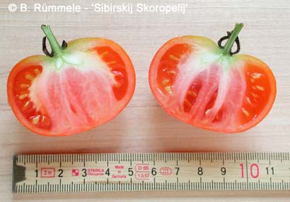Früchte, geschmacklich schwach. {15} Pfl. 1,2m, kartoffelblättrig. Ab