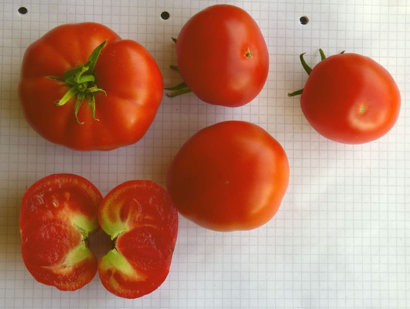 große Früchte vom Ketchup-Typ. Sind alle Früchte so länglich gewesen? Ich